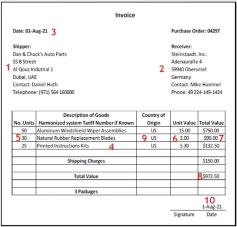 For non-document shipments, make sure all the details are complete, as missing or incomplete invoice details can cause the goods to be held at the origin. The most common invoice errors include: